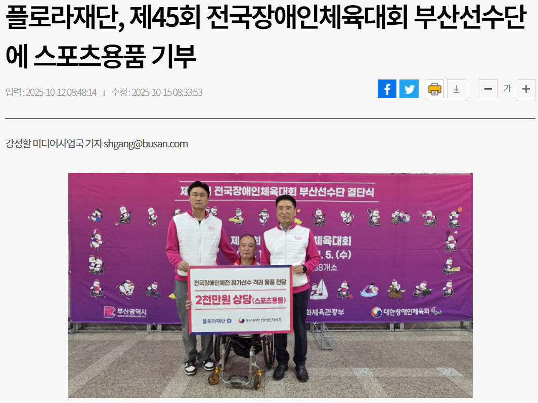 [NEWS] 플로라재단, 제45회 전국장애인체육대회 부산선수단에 스포츠용품 기부-부산일보